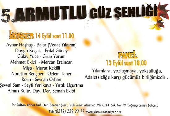 5.Armutlu Güz ŞenliğiPANEL : "Yıkımlara, yozlaşmaya, yoksulluğa, Adaletsizliğe karşı gücümüz birliğimizdir..."TARİH: 13...