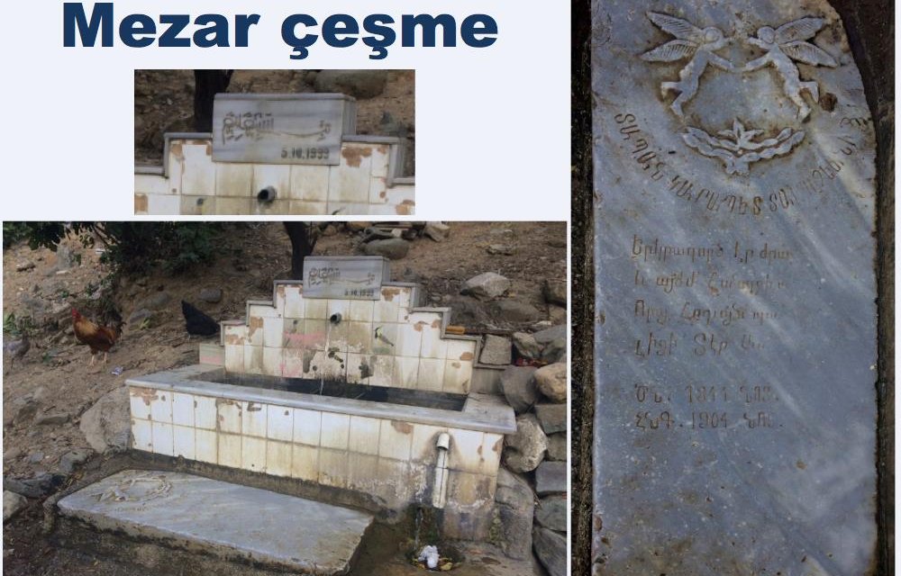 Gördüğünüz gibi, bu bir çeşme fotoğrafı. İlk bakışta sıradan gibi duruyor. İlk dikkat çeken şey, bakımsızlığı. En tepesinde besmele ve yapım tarihi olan 5 Ekim 1999 yazılmış. Onu ilginç kılan ise, çeşmenin önünde, tabana konmuş uzun mermerin bir mezar taşı olması. Kasım 1844’te doğmuş, 1904’te başka bir Kasım’da ölmüş rençber Garabed Dalbizyan’ın mezarı. Taşın çeşmeye en yakın tarafındaki yazılar, su içmek için en çok o noktada durulduğu için, üzerine basıla basıla silinmiş. Garabed’in yakınları ne bilsinler mezarın ve taşının başına neler geleceğini, “Burada dinleniyor” mealinde bir şeyler yazmışlar.