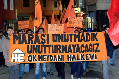 Okmeydanı Halkevi'nin 25 Aralık Cuma günü düzenlediği eylemde yaklaşık 120 kişi saat 19.00'da Halkevi önünde topandı. Yürüyüş boyunca "Maraş'ı unutmadık,unutturmayacağız" yazılı pankart, döviz ve flamalar taşındı. Semt sakinleri alkışlarla yürüyüşe destek verdi.