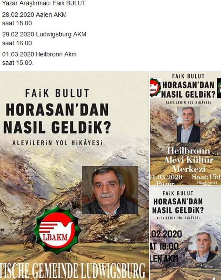 Önümüzdeki günlerde Araştırmacı-Yazar Faik Bulut'u konuk edecek olan Aalen, Ludwigsburg ve Heilbronn derneklerini isim vermeden hedef alan Müslim Kaya benzeri bir rahatsızlığı kısa bir süre evvel sosyal medya hesabından duyuran Alevileri şiacı söylemlerle tanımlama uğraşının baş mimarlarından Ali Yaman düşünsel bazda senkronize haraket ettikleride gözler önünde...