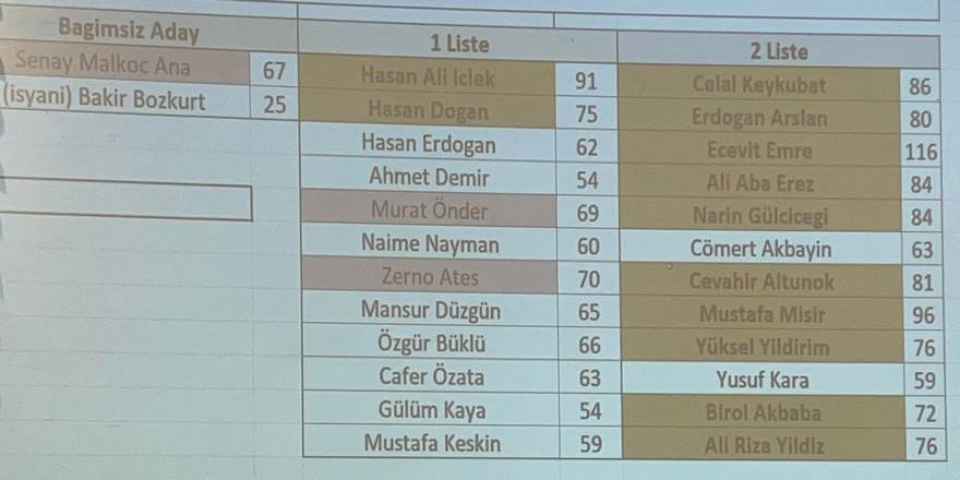 İşte seçim sonuçları ve oluşan yeni yönetim kurulu ve aldıkları oylar: