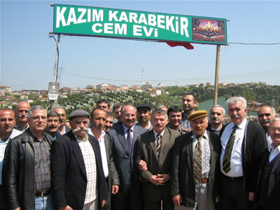 KARTAL (18.04.2009)- Alevi Bektaşi Federasyonu Genel Başkanı Ali Balkız ve Pir Sultan Abdal Kültür Derneği İstanbul şubeleri, bugün AKP'li Ümraniye Belediyesi tarafından yıkılmak istenen Kazım Karabekir Mahallesi Cemevi'ne destek ziyaretinde bulundu.