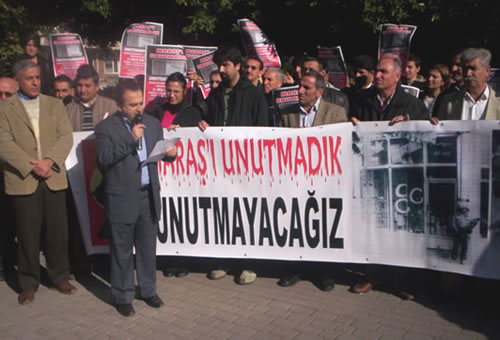 Adana Alevi Bileşenleri, Maraş katliamının 30. yılında ‘Unutursak Hatırlatırlar, Katliamın Gizli Arşivleri Açıklansın’ başlıklı bir miting düzenleyecek. 21 Aralık Pazar günü saat 12.00’de Mimar Sinan Amfi Tiyatro önünde başlayacak miting öncesi bir basın açıklaması yapıldı. Pir Sultan Abdal Kültür Derneği Adana Şubesi önünde bir araya gelen Alevilerle EMEP, DTP, ÖDP, Eğitim Sen, Halkevleri ve ESP üyeleri, sloganlarla İnönü Parkı’na kadar yürüdü. Burada basın açıklaması yapan ABF’den Kemal Derin, katliamlara ve kıyımlara karşı olan herkesi mitinge beklediklerini söyledi.