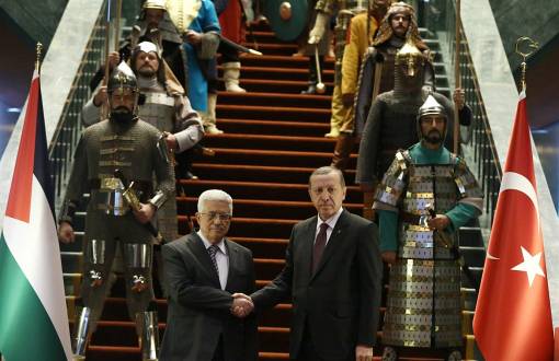 Cumhurbaşkanı Recep Tayyip Erdoğan, Filistin Devlet Başkanı Mahmud Abbas'ı tartışmalara neden olan Ankara Beştepe’deki yeni Cumhurbaşkanlığı Sarayı'nda resmi törenle karşıladı.