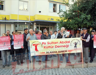 Pir Sultan Abdal Kültür Derneği (PSAKD) Alanya Şubesi, 8 Kasım'da düzenlenecek olan, "İstanbul'da Ayrımcılığa Karşı Eşit Yurttaşlık Hakkı İçin Buluşuyoruz," mitingi öncesi PTT önünde buluştu. PSAKD Alanya Şube Başkanı Şah İsmail Aydoğdu yaptığı açıklamada, "Demokratik hukuk devletinin en önemli kriteri, yasalar önünde ve gerçek yaşamda hiç bir ayrım olmadan bütün yurttaşlar eşit muamele görmeleridir. Oysa bugün ülkemizde Aleviler eşit muamele görmüyorlar," şeklinde konuştu. 8 Kasım'da yapılacak mitingin ana talebi 'Ayrımcılğa Karşı Eşit Yuttaşlık Hakkı,' talebini kendi talebimiz olarak görüyoruz şeklinde sözlerine devam eden Aydoğdu, daha sonra yapılacak olan mitingin amaçlarını açıkladı. Aydoğdu, mitingin en önemli amacının, Alevi Çalıştayı'na sunulan taleplerin kabul görmesi olduğunu dile getirdi. Mitinge katılmak isteyenler için, 7 Kasım Cumartesi günü, saat 20.00'de otobüs kaldırılacağını ve katılmak isteyenlerin derneğe başvurabileceğini söyleyen Aydoğdu, ulaşımın ücretsiz olduğunu belirtti.