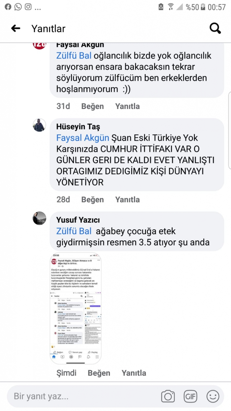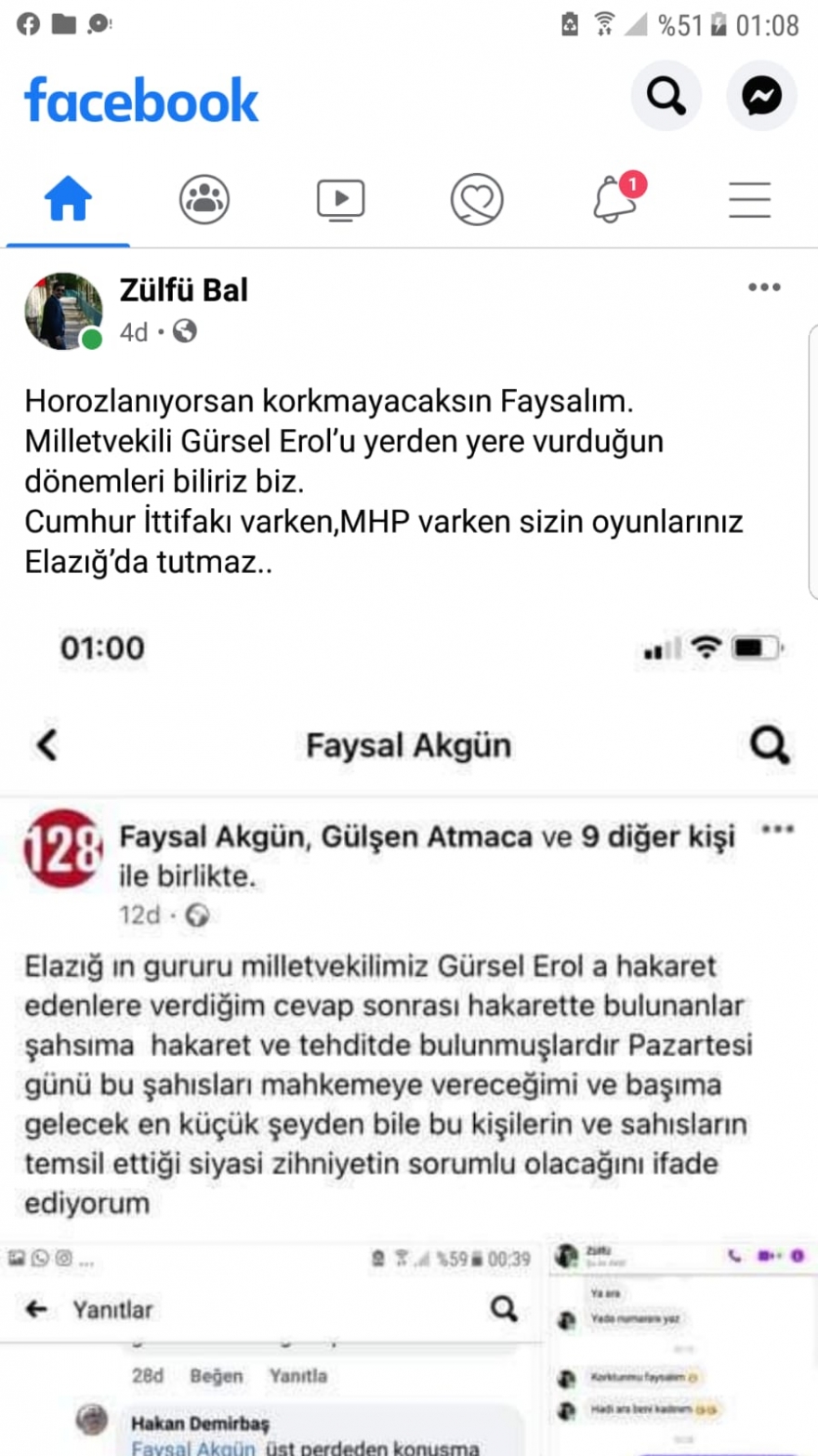 “23 Nisan günü sosyal medya üzerinden Elazığ’da Milliyetçi Hareket Partisi (MHP) yöneticisi olan Zülfü Bal isimli şahıs partim ve Elazığ milletvekilimiz Gürsel Erol hakkında bazı paylaşımlarda bulundu. Hakaretler içeren paylaşımlardı bunlar. Ben de buna karşı partimi ve milletvekilimizi savunan yazılar yazdım altına. Ben CHP’de gönüllü çalışan birisiyim. Ardından Zülfü Bal’ın kendisi ve arkadaşları bana tehdit ve hakaretler içeren yazılar yazdılar. 27 Nisan günü de karakola giderek şikayette bulundum. Tehdit mesajlarının görüntülerini teslim ettim. Bugünde sabah dışarı çıkarken kapıyı açtım ve bu manzarayla karşılaştım. Direk emniyeti arayarak bilgi verdim. Emniyet gelerek gerekli işlemleri yaptı. Soruşturma başlatıldı. Ancak bizim olduğumuz mahallede kamera yok fazla. Olay yeri inceleme çalışma yaptı. Ben şikayetimden vazgeçmeyeceğim. MHP’den bana herhangi bir dönüş olmadı, ‘biz yapmadık’ gibi bir açıklama da gelmedi.”