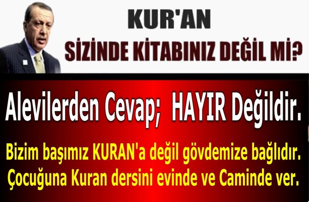 Sözüm “esas Müslüman biziz” diyen takiyyeci Alevilere, madem “esas Müslüman sizsiniz” kitabınız da Kuran, neden Müslümanlar gibi Kuran’a göre yaşamıyorsunuz? Müslümanlığı kabul etmiş bir toplumun yaşamını Kuran’a göre dizayn etmek kadar doğal bir şey olamaz. “Esas Müslüman biziz” diyen Aleviler Kuran bizim kitabimiz derler ama Kuran’a göre de yaşamazlar. Çünkü kuran Alevilik ve Alevilerin yaşam tarzı ile tamamen zıttır.