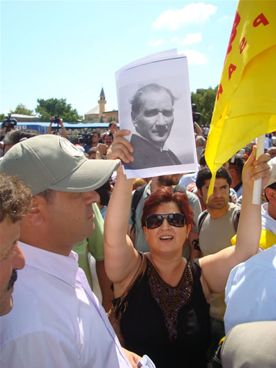 Protestoların devam ettiği sırada Hacıbektaş Belediye Başkanı Ali Rıza Selmanpakoğlu, grubun yanına geldi. Başkan kendisini de protesto edenlere " Atatürkçüler burada, bölücüler dışarı " diye bağırdı. Gurup Belediye Başkanı A.Rıza Salmanpakoğlu'na Atatürk düşmanlarını ve şeriatçıları , Atatürk'ü sevmeyenleri davet ettiğini söyleyerek, Milli görüş kökenli Abdullah Gül'ü neden Hacıbektaş'a davet ettin şeklinde tepki gösterdi.