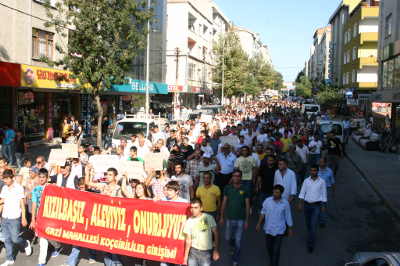 Eyleme, ESP'nin de destek verdği 2 bin kişi katıldı. Cem Evi önünde toplanan halk “Kızılbaşız, Aleviyiz, Onurluyuz” pankartını açtı, yol bir şeridini trafiğe kapattı, sloganlarla Dörtyol'a yürüdü.