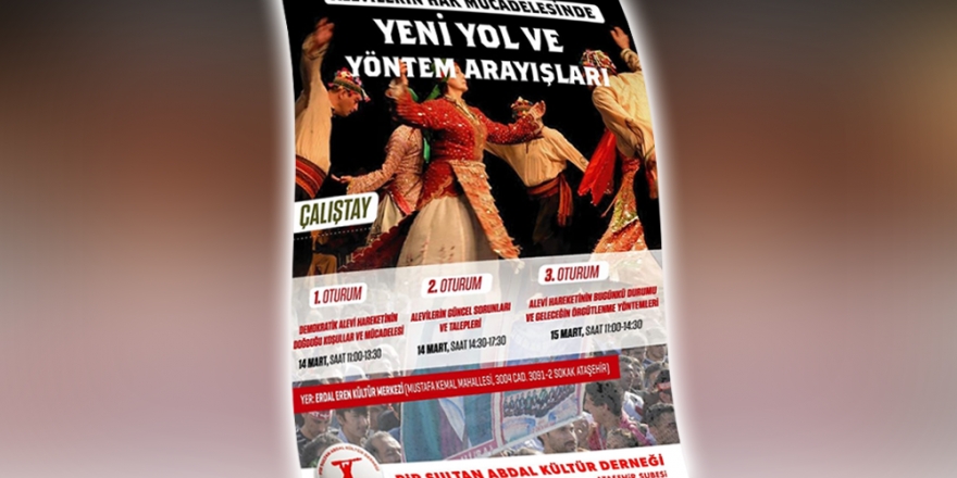Pir Sultan Abdal Kültür Derneği Ataşehir Şubesi, ‘Alevilerin Hak Mücadelesinde Yeni Yol ve Yöntem Arayışları’ başlığıyla iki gün sürecek çalıştay düzenliyor. 14-15 Mart tarihlerinde Ataşehir Şubesi’nde yapılacak çalıştayın omurgası üç başlıktan oluşuyor.