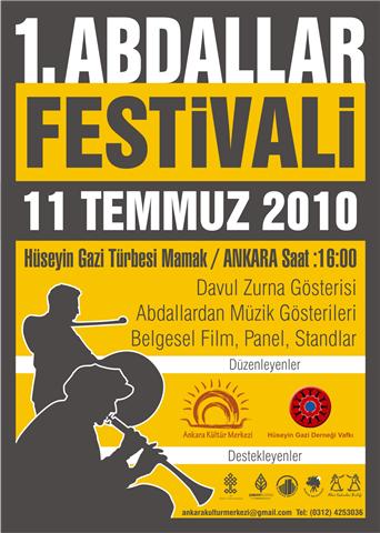 Ankara'da "1. ABDALLAR FESTİVALİ" yapılıyor! 11 Temmuz 2010, 14:00 / 23:00Hüseyin Gazi Türbesi, Mamak / ANKARAAnkara Kültür...