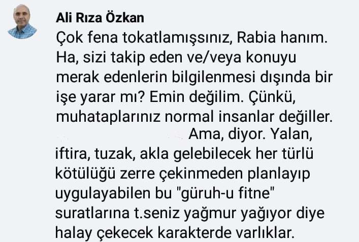 Perinçek yetiştirmesi Ali Rıza Özkan en son samimi olduğunu gizleme ihtiyacı duymadan Alevilere hakaret eden çakma bipo Rabia Mine Yıldız ve ortamına göre renk veren siyasi oryantal ibancı Tamer Dursun'a verdiği destekle dikkatleri çekmişti.