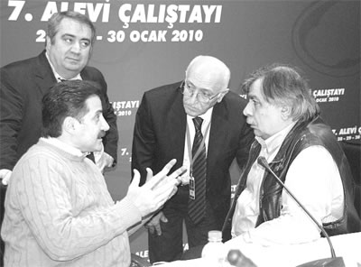 Devlet Bakanı Faruk Çelik, Alevi Çalıştayı’na verilen arada sanatçı Arif Sağ’la sohbet etti. fotoğraf: MUSTAFA ÖZDEMİR / aa