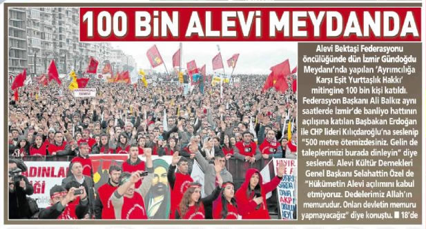 POSTA : 100 BİN ALEVİ MEYDANDA BİRGÜN : ALEVİLER İZMİR'DEN ANKARA'YA SESLENDİ MİLLİYET : ALEVİLER İZMİR'DEN SES VERDİ CUMHURİYET :...