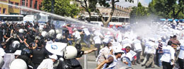 Toplusözleşme görüşmelerinde anlaşma sağlanamadığı için İstanbul Büyükşehir Belediyesi’ne grev kararı asmak isteyen işçilere polis saldırdı. Saldırıya rağmen belediye önüne yürüyen işçiler, sözleşmedeki dayatmalara ve saldırılara karşı mücadele çağrısı yaptı. İstanbul Büyükşehir Belediyesi ile Belediye-İş Sendikası arasında 6 aydır süren toplusözleşme görüşmeleri, işverenin yüzde 8 zam dayatması nedeniyle tıkanmıştı.