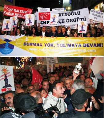 CHP’liler önceki akşam Galatasaray Meydanı’nda toplanarak ‘Deniz Feneri’ yolsuzluğunu protesto etti. Taksim Meydanı’na yürümek isteyen gruba polis izin vermeyince arbede yaşandı. CHP’li grup pankartlar ve sloganlar eşliğinde Taksim Meydanı’na doğru yürüyüşe geçti. Polis ekipleri gruba pankartlarını indirmelerini ve yürüyüşü bitirmelerini söyledi. Bunun üzerine Beyoğlu İlçe Emniyet Müdürü Yusuf Yüksel ile CHP İstanbul İl Başkanı Gürsel Tekin arasında tartışma çıktı. Tartışma kısa süre de büyüyerek arbedeye döndü. Daha sonra grup İstiklal Caddesi’ndeki CHP Beyoğlu İlçe Başkanlığı önüne geldi.
