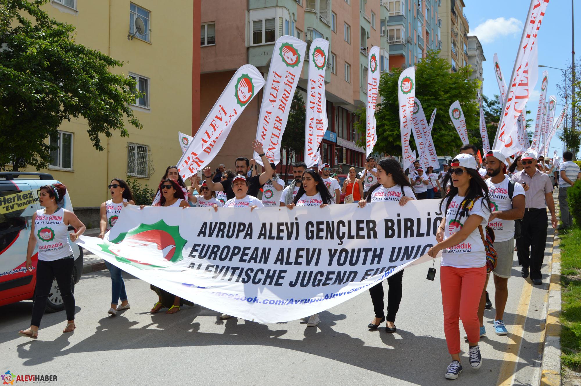 Hacı Bektaş Veli Anadolu Kültür Vakfı Çorum Şubesi ile Çorum Alevi Kültür Merkezi tarafından düzenlenen program kapsamında Çorum Hacı Bektaşi Veli Vakfı bahçesinde toplanan çok sayıda yurttaş, Bahabay ve Gazi Caddesi'ni takip ederek sloganlarla Hürriyet Meydanı'na yürüdü.