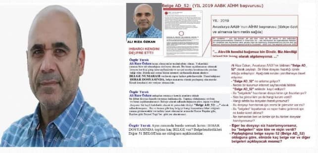 Alevi toplumunu fişlemek için adeta görevli bir eleman gibi uğraşan maaşsız Çelebi Ali Rıza Özkan o süreçte Avusturya Alevi Birlikleri Federasyonu (AABF)’nin geçmişte herkese açık olan sayfalarındaki bilgileri sıra numarasına göre arşivlemişti.