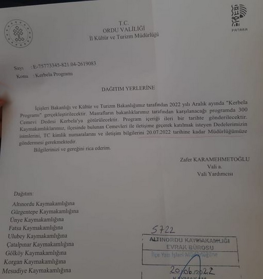 Alevi Haber kaynaklarına gelen bir bilgiye göre Türkiye genelinde 300 Cemevi dedesi ileride Aleviliğin İslam ile bağlarını kuvvetlendirme çalışmalarında kullanılmak üzere İçişleri Bakanlığı ve Kültür ve Turizm Bakanlığı kamuflajıyla Kerbela'ya göndermek üzere aranıyor.