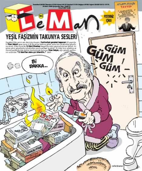 Gündemi en yakın takip eden mizah dergilerinden biri olan Leman Dergisi bu hafta Ergenekon Operasyonu'nu ön ve arka kapağında yayınladığı iki ayrı karikatürle gündeme taşıdı.