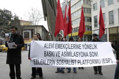 İSTANBUL (27.01.2008) - Ezilenlerin Sosyalist Platformu, bugün Galatasaray Meydanı'nda yaptığı basın açıklaması ile son dönemde Alevilere yönelik baskıları protesto etti.