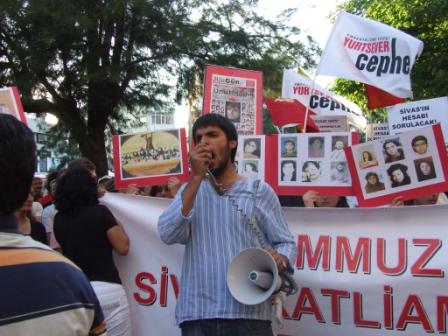 Pir Sultan Abdal Kültür Derneği Antalya Şubesi gençlik komisyonu üyesi Cem YILMAZER tutuklandı. (Fotoğraf : Alevi Haber - 2 Temmuz 2007 Antalya)