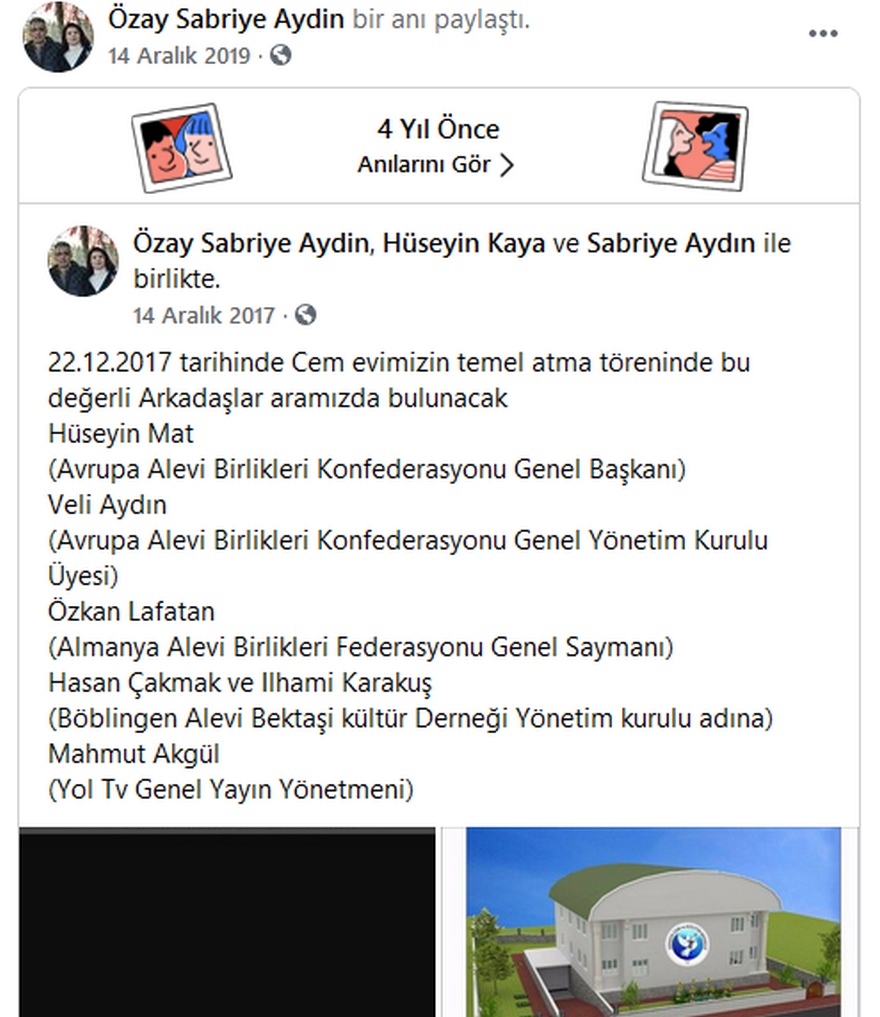 İşte Isparta Cemevinin temel atma törenine dair AKP yandaşı Sabriye Aydın'ın Facebook hesabından yaptığı duyuru ve Isparta komutanlarının isimleri ve ünvanları: