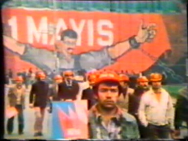 Bu pankartın altında Karl Marx’ın resmi vardı. Tanışsın tanışmasın tüm işçiler birbiriyle bayramlaştı. Türkiye Sosyalist Fırkası’na mensup işçiler yine mavi gömlek giyip boyunlarına kırmızı boyunbağı takmışlardı. Yakalarında yine fırka rozetleri vardı.