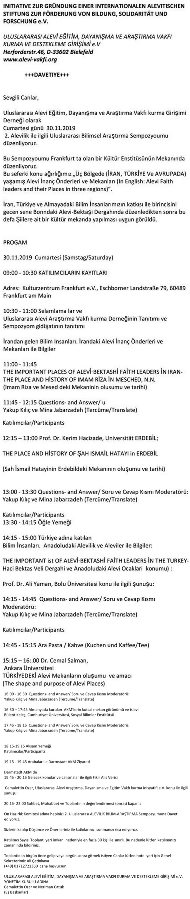 Alevileri şiileştirme projesinin piyonlarından olan bu İslamcı vakfın, İran Berlin Başkonsolosluluğu ile beraber düzenlediği etkinliğin programı:
