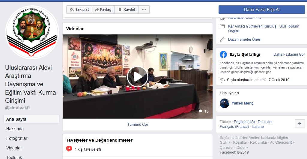 İlgili Vakfın sayfasında yayınlanan videosu: https://www.facebook.com/alevivakfi/videos/2233807913527711/