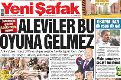 Yeni Şafak, kendine Müsluman haberciliğini bugün de sürdürdü, “Mitinge DTP'nin gölgesi düştü” başlıklı bir haber yaptı. Gazete yüz bin kişinin katıldığı mitingi şöyle duyurdu: “Alevi-Bektaşi Federasyonu öncülüğünde Ankara'da düzenlenen 'Eşit Yurttaşlık' mitinginin üzerine DTP gölgesi düştü. Önde gelen Alevi kuruluşlarının 'yerel seçimler öncesinde pazarlama girişimi' olarak nitelendirdiği ve 'DTP' faktörü nedeniyle destek vermediği miting, beklenenden sönük geçti.” Gazete, mitinge yüzbin kişinin katıldığını görmezden gelirken, miting için binlerce polis görevlendirildiğini göze batırmayı unutmadı