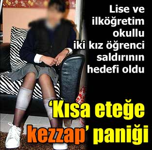MERSİN’in Tarsus İlçesi’nde biri lise son diğeri ilköğretim okulu 6’ncı sınıf öğrencisi 2 kızın bacaklarına, eteklerinin kısa olduğu gerekçesiyle arkalarından gelen birkaç kişi tarafından şırınga ile sıvı bir madde püskürtüldü. Yanma hissi ile çığlık atan kız öğrencilerden biri kuaföre, diğeri okuluna sığındı. Yakıcı sıvı maddenin ne olduğu araştırılırken, kızların bacaklarında yara oluştu. Doktorlar, kız öğrencilerin bacaklarına sıkılan sıvı maddenin güçlü bir asit olabileceğini söylerken, polis saldırganları arıyor.