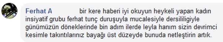 1,5 yıl evvel dünya emekçi kadınlar gününde hayatını kaybeden Ferhat Tunç'un kız kardeşi Nadire Yoslun için toprağa verildiği kutsal Dersim topraklarında Emekçi Kadın İnisiyatifinin yapmak istediği anıt mezarı saldırısına malzeme yapan LA Kitap sahibi Leyla Akgül, Ferhat Tunç'ün Dersimli bir ailenin dünyanın tüm kirliliklerinden uzak yaşamlarına duyduğu hayranlığı dile getirirken ''hep böyle saf kalın'' cümlesini ''hep böyle sefil kalın'' diye çarpıtarak Devrimci sanatçıya ve Dersim kimliğine saldırma cüretini bir kez daha gösterdi.
