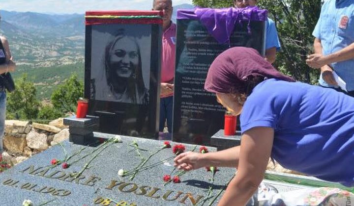 Devrimci kadın Nadire Yoslun'un anıt mezarının açılışından bir kare: