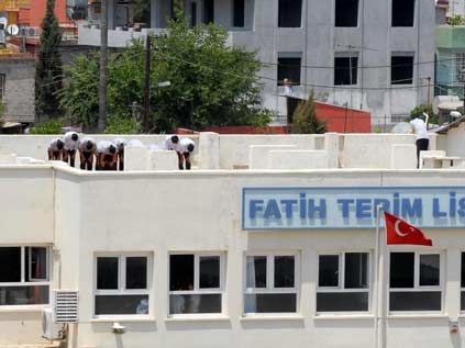 Lisenin çatısı ibadethane olduMilli Takım Teknik Direktörü Fatih Terim tarafından Adana'da yaptırılan lisenin çatısında öğrenciler...