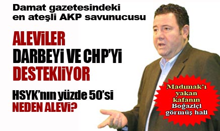 Sabah gazetesi köşe yazarı Emre Aköz, HSYK'da yaşanan atama krizinin altında 'Alevilerin' olduğunu öne sürdü ve açıkça Alevi vatandaşlarımızı 'darbe destekçisi' ve 'CHP'li olmakla suçladı. Damatın gazetesinin en ateşli AKP savunucusu olan Aköz için CHP'li olmak suç sayılabilir ama, Ergenekon sanıkları hakkında davacı olan Alevi Dernekleri Federasyonu Başkanı Ali Balkız'a rağmen bütün Alevi yurttaşları 'darbecilikle' suçlaması, en hafif tabirle 'Madımak'ı yakan kafanın Boğaziçi görmüş hali' olarak tanımlanabilir.