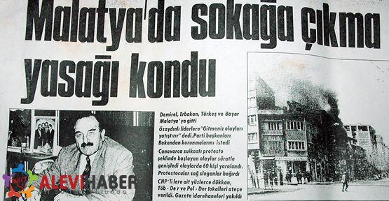 Hürriyet (18. 02. 1975): “Malatya’da Pazar günü çıkan olaylar sırasında sağcı oldukları öne sürülen eli sopalı topluluk 300 işyerini tahrip etmişlerdir. İki kişinin öldürülmesi ve 100 kişinin yaralanmasından sonra, askeri birliklerin müdahalesiyle güçlükle bastırabilen olaydan sonra 224 kişi gözaltına alınmıştır.”