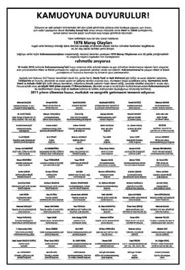 Aralarında sanayi ve ticaret örgütleri, Kahramanmaraşlılar dernekleri, bazı Alevi örgütleri ve odaların da bulunduğu imzacılar ulusal basına verdikleri tam sayfa ilanlarda şu sözlere yer verdi:
