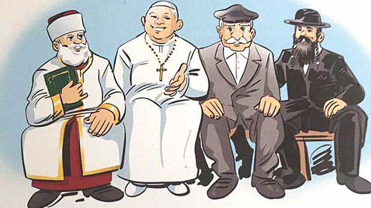 Siyasal islamcı egemen anlayış ve müttefik halinde oldukları çeteler, din adamlarının resmedildiği aşağıdaki görsel üzerinden günlerdir İstanbul Büyükşehir Belediyesine saldırıyorlar. Üstelik bunu yaparken görselin orijinalinde yazmayan din isimlerini de üstüne yazıp, kendilerince çok açık ve net bir yönlendirme yapmaya çalışıyorlar.