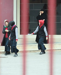 Okul bahçesinde türbanlı öğrencilerBaşakşehir’deki Çınar Koleji’nde çok sayıda türbanlı öğrenci okuyor....