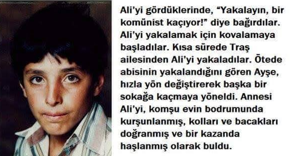 Bu resimde gördüğünüz kalaycı Şah İsmail ve ailesi Maraş Katliamında katledildi. Şah İsmail'i baltayla katledip, beynini parçaladılar. Kız kardeşinin ise önce memelerini kesip çeşitli işkencelerden geçirdikten sonra hunharca katlettiler. Yörük Selim Mahallesinde de kadınların bir kısmı memeleri kesilerek öldürülmüştür. Altı aylık çocuklar, hamile kadınlar kurşunlanır. Gözlerine şişler sokulur. Bir kısım infazlar ise; çeşitli dini referanslar doğrultusunda “kol ve bacakların çapraz kesilmesiyle” gerçekleşmiştir.