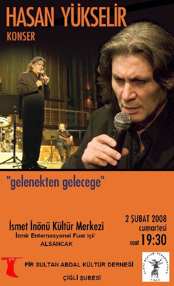 PSAKD Çiğli Şubemizin, Fuar içi İsmet İnönü kültür merkezinde 2 ŞUBAT 2008 tarihinde 17:30 gerçekleştirilecek olan Uluslararası Sanatçı olan Hasan YÜKSELİR’in ( www.hasanyukselir.com ) yapacağı "GELENEKTEN GELECEĞE" konserine Davet ediyoruz.