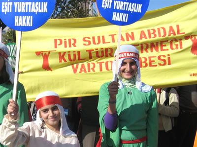 07-08 Kasım 2008’de üyesi olduğumuz ABF tarafından düzenlenen “ EŞİT YURTTAŞLIK HAKKI İÇİN BÜYÜK ALEVİ YÜRÜYÜŞÜ ” ve 9 Kasım 2008 Ankara Sıhhiye Meydanı’nda yapılan “BÜYÜK ALEVİ MİTİNGİ” ne PİR SULTAN ABDAL KÜLTÜR DERNEĞİ oldukça etkin ve kitlesel olarak katılmıştır. Derneğimiz Genel Yönetim Kurulu ve Danışma Kurulu tarafından tartışılarak somutlaştırılan ve ABF'ye önerilen “BÜYÜK ALEVİ YÜRÜYÜSÜ ve MİTİNGİ” Türkiye gündemini belirlemiş ve mitingde dile getirdiğimiz talepler hiç tartışmasız kamuoyunun gündemine oturmuştur.