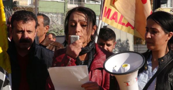 eylemde açıklama yapan Psakd Malatya Şube Başkanı Songül Tunçdemir,
