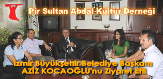Pir Sultan Abdal Kültür Derneği Genel Başkanı Fevzi GÜMÜŞ, PSAKD GYK Üyesi Şehri TUĞCULAR, PSAKD Çiğli Şube Başkanı Türkan DOĞAN, PSAKD Bornova Şube Başkanı Cahit AKDOĞAN ve PSAKD Bornova Şube Yönetim Kurulu üyesi Özlem VAROL’dan oluşan PSAKD Heyeti, İzmir Büyükşehir Belediye Başkanı Aziz KOCAOĞLU’nu makamında ziyaret etti.