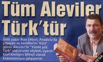 Yazar Rıza Zelyut, Anadolu’da kendilerini “Kürt” olarak gören Alevilerin Türk olduğunu söyleyerek “Tunceli’de Sivas’ta, Malatya’da, Elazığ’da, Erzincan’da yaşayan Türk gençlerine, Kürt kimliği bilinçli olarak aşılanıyor” dedi