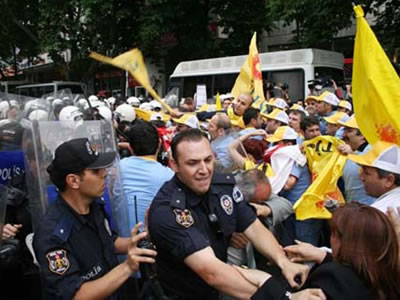 EĞİTİM Sen Adana Şubesi, eğitim ve bilim emekçilerinin toplu sözleşme talebine karşı polisin coplu ve biber gazlı müdahalesine tepki gösterdi. Eğitim Sen binası önünde bir araya gelen eğitim emekçileri, her işçi, emekçi eylemine “Yasak, suç, yürüyemezsiniz” diyen polisin müdahalesine maruz kaldı. Polisin yürüyüşü engelleme girişimlerine rağmen Eğitim Sen binası önünde İnönü parkına kadar yürüyen eğitim emekçilerine, İstanbul Milletvekili Ufuk Uras da destek verdi.