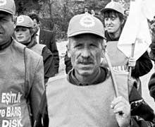 Çelebi, daha sonra DİSK yönetim kurulu üyeleri ile grevde gözcülük yapan işçilere başarılar diledi.