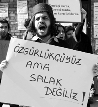 Siyasi İslamcıların ve özel olarak AKP’nin tek bir kategorideki ‘özgürlüğü’ yani sadece kendileri için özgürlüğü savunduğunu belirten gençler yaptıkları açıklamada, “Ama sosyal güvenlikteki uygulamalarıyla yaşama özgürlüğünü hiçe sayıyor, parası olmayanları eğitim hakkından mahrum bırakıyor, 301. madde konusunda ayak direterek düşünce özgürlüğünü reddediyorlar; her türlü toplumsal muhalefet eylemini polis copuyla dağıtılıyor dediler. Birgün İzmir