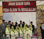 BATMAN’DA Kutlu Doğum Haftası nedeniyle aralarında Mustazaf-Der’in de bulunduğu “Peygamber Sevdalıları Platformu” tarafından okutulan mevlit mitinge dönüştü. Yeni otogar yanındaki açık alanda düzenlenen programda tef eşliğinde Kürtçe mevlit okutulurken, mevlite katılan erkekler ile kadınlar arasına şerit çekildi. Batman ve ilçelerinden gelen binlerce kişinin katıldığı mevlitte, çarşaflı kadınların ön saflarda olduğu gözledi. Filistin bayraklarının bulunduğu mevlit alanına gelenler, polis tarafından tek tek aranarak alana alındı. Mevlitte ilahilerin okunduğu mevlit sırasında bazı vatandaşlar zikir yaptı. Mevlitte başları türbanlı kız çocukların ilahiler okuduğu mevlit nedeniyle trafikte de sıkıntılar yaşandı. Trafik polisleri, yolu açmak için büyük çaba sarf etti. Sık sık tekbir getirilen programda, Hz. Muhammed’in sosyal ahlakı ve yaşamından örnekler anlatıldı. Öte yandan, mevlit için alana gelenlere çocuk ilahi grubunun çıkarmış olduğu Kürtçe CD’den 70 bin adet dağıtıldığı öğrenildi.